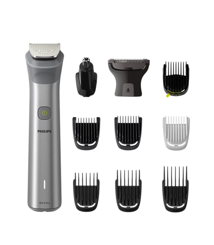 Philips All-in-One Trimmer Series 5000 MG5930/15 je svestrani 11-u-1 trimer za lice, kosu i tijelo, savršen za potpunu stilizaciju bez više uređaja. S BeardSense tehnologijom automatski prilagođava snagu rezanja debljini dlake, dok DualCut oštrice režu dvaput brže i ostaju oštre bez mazanja. Uključuje 11 alata za precizno trimanje brade, kose, tijela i detalja, a punjiva Li-ion baterija osigurava do 120 minuta bežičnog rada nakon 1 sata punjenja. Vodootporan (mokro/suho), lako se čisti pod vodom, a ergonomski dizajn u sivoj boji uključuje putnu torbicu za praktičnost.