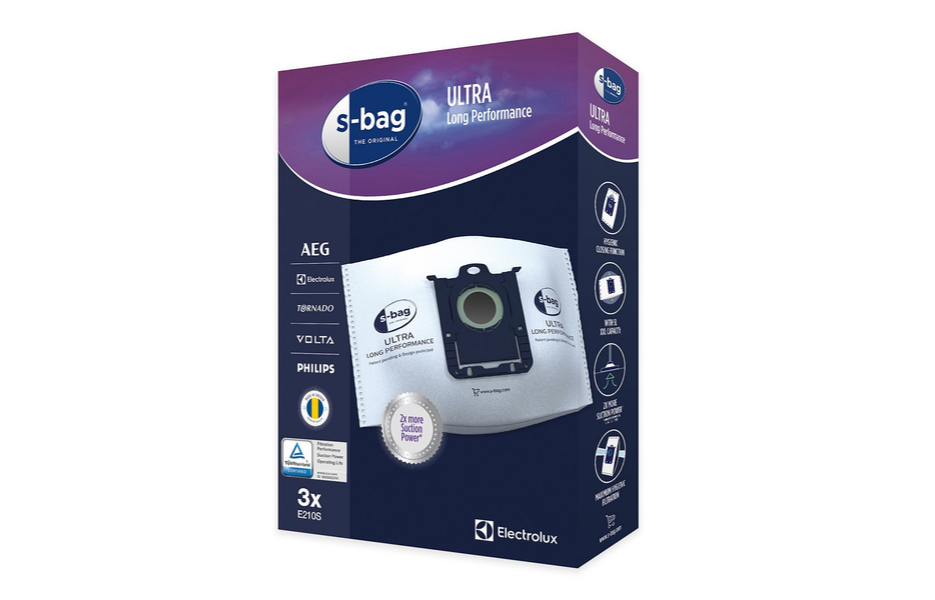 s-bag® Ultra Long Performance traje 80 % dulje od tradicionalnih papirnatih vrećica za usisavač i ima optimalnu zapremninu od 5 litara.